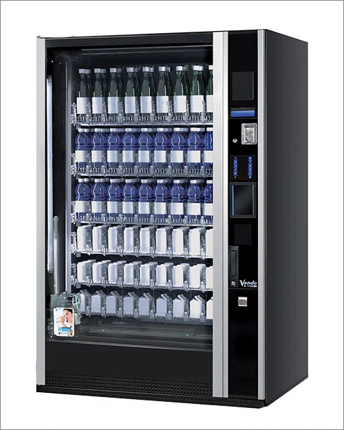 L’evoluzione di G-Drink non finisce mai. Il distributore automatico con il più ampio “Glass-front” della nostra storia si presenta nel suo nuovo look. Un’ampia e ben illuminata vetrina migliora la visibilità del prodotto. Una innovativa tastiera a sfioramento capacitiva retroilluminata fornisce un’ottima visibilità anche in un ambiente buio. Nuove caratteristiche user-friendly, nuovo e ampio display a caratteri blu e un nuovissimo e semplice sistema di chiusura dello sportello.
