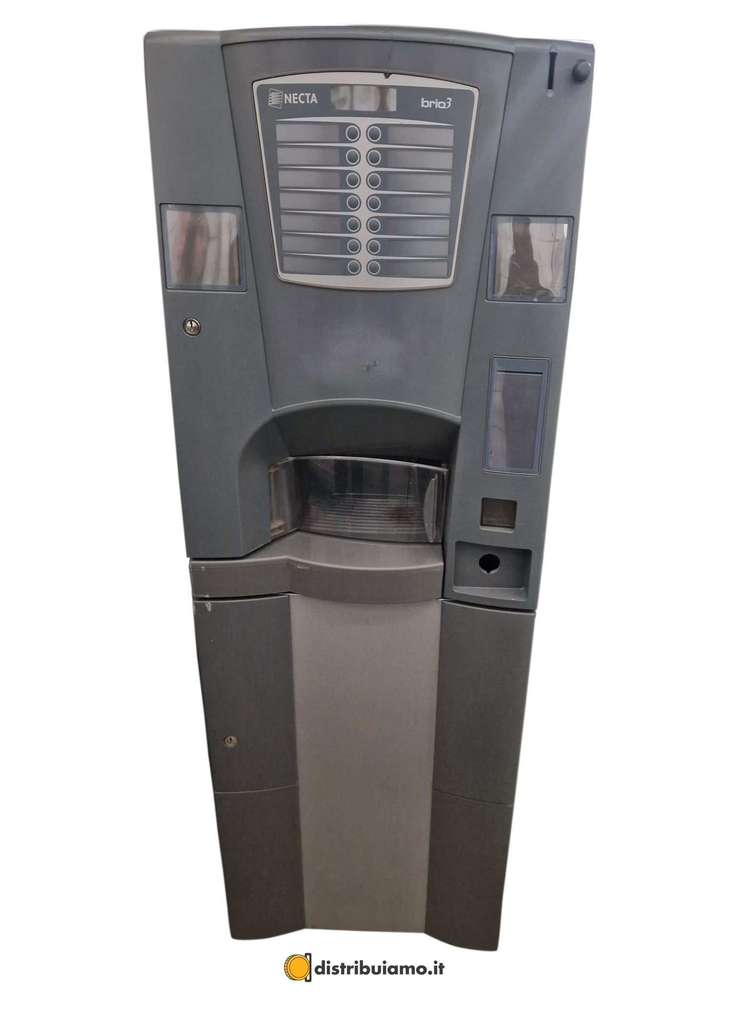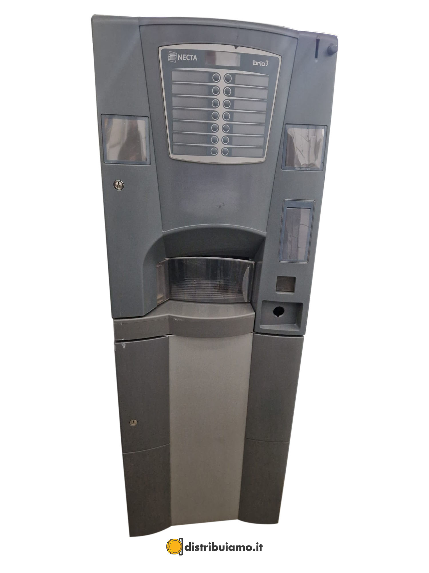 In vendita il distributore di bevande Brio 3 NECTA usato in buone condizioni: è la piccola della gamma NECTA, adatta per le piccole e medie imprese, eroga un vero caffè espresso. E’ completa di sistema di pagamento a monete e chiavette cashless.